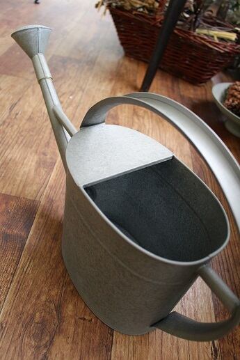 ガルバナイズ加工が施されたブリキのジョーロ。亜鉛メッキによる防サビ加工を施した処方で錆にくいのが特徴です。アンティーク調の風合いや質感はインテリアにもお使え頂けます。